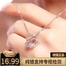 2克拉8毫米宝石莫桑钻石水晶吊坠托空托未镶嵌复古简约925纯银女
