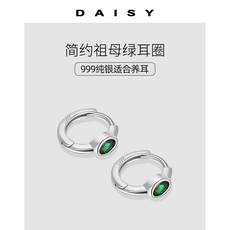 999纯银祖母绿钻石耳钉女气质设计感耳圈养耳洞高级耳环小众耳饰