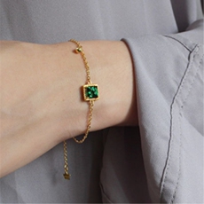 CR-J日系轻奢18K天然祖母绿红蓝宝石小方糖钻石手链优雅精致包邮