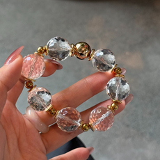 天然水晶黄水晶切面手链女款钻石刻面体透颜色好男女水晶手串饰品