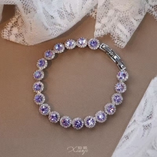 韩国七彩色超闪锆石手链女甜美水晶蒙娜丽莎气质百搭钻石手环闺蜜