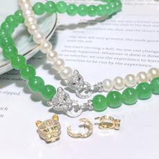 18K白金钻石珠链扣头镶嵌红宝珍珠手链定制金扣翡翠豹子项链男女
