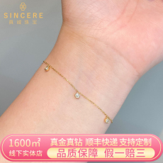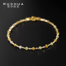 若华珠宝闪星=天然钻石手链女18K金黄钻手串彩钻串珠手饰礼物定制