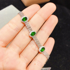 高品质起胶起荧光18K金镶嵌钻石天然和田玉碧玉苹果绿马眼手链
