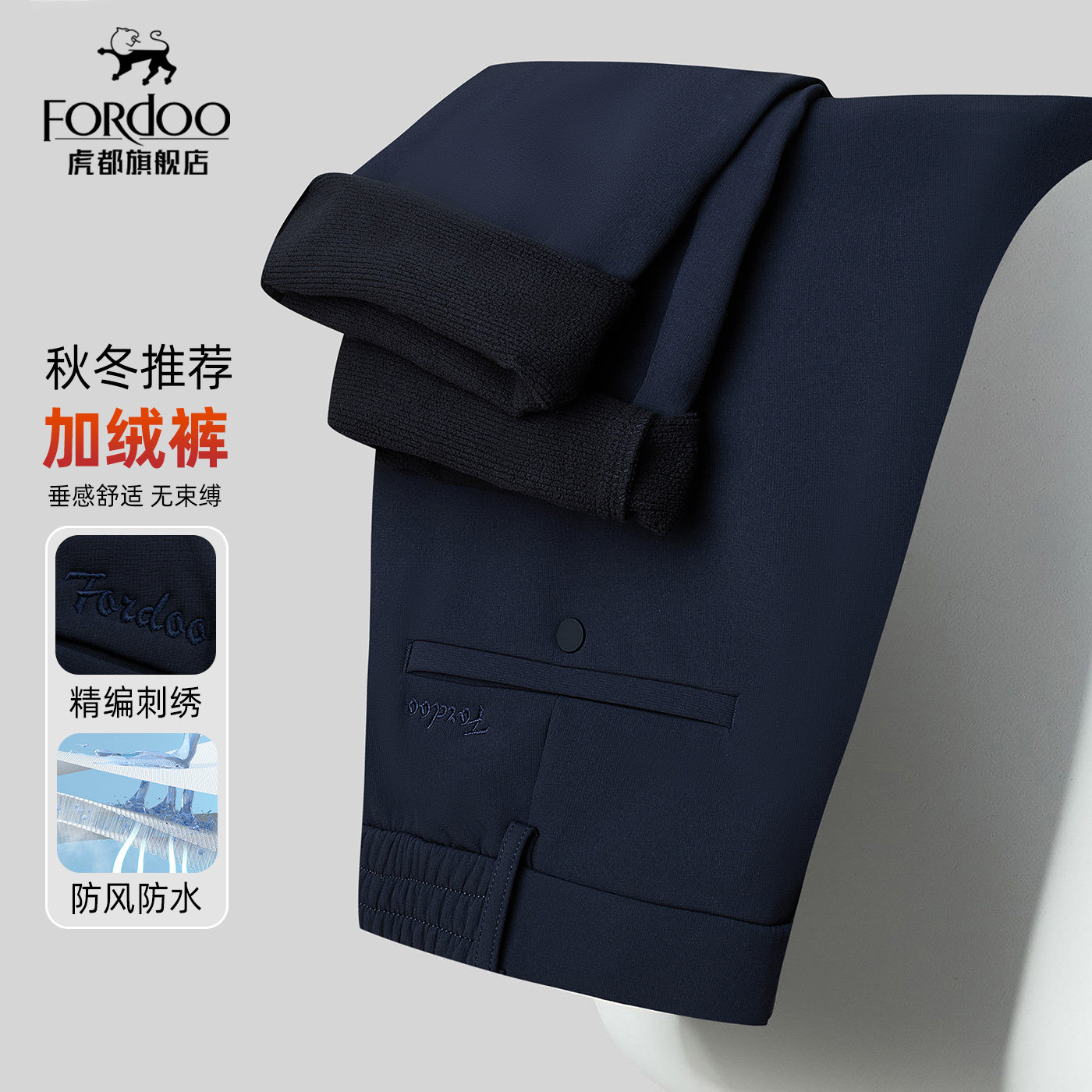 虎都官方旗舰店男装加绒加厚裤子