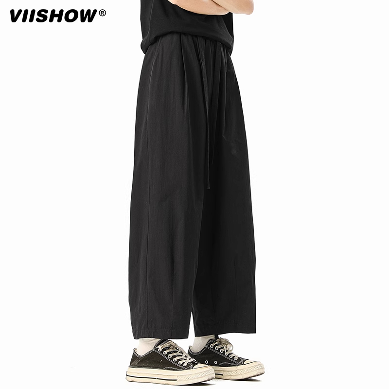 VIISHOW日系褶皱九分裤男夏季薄款宽松纯棉慵懒风百搭直筒休闲裤