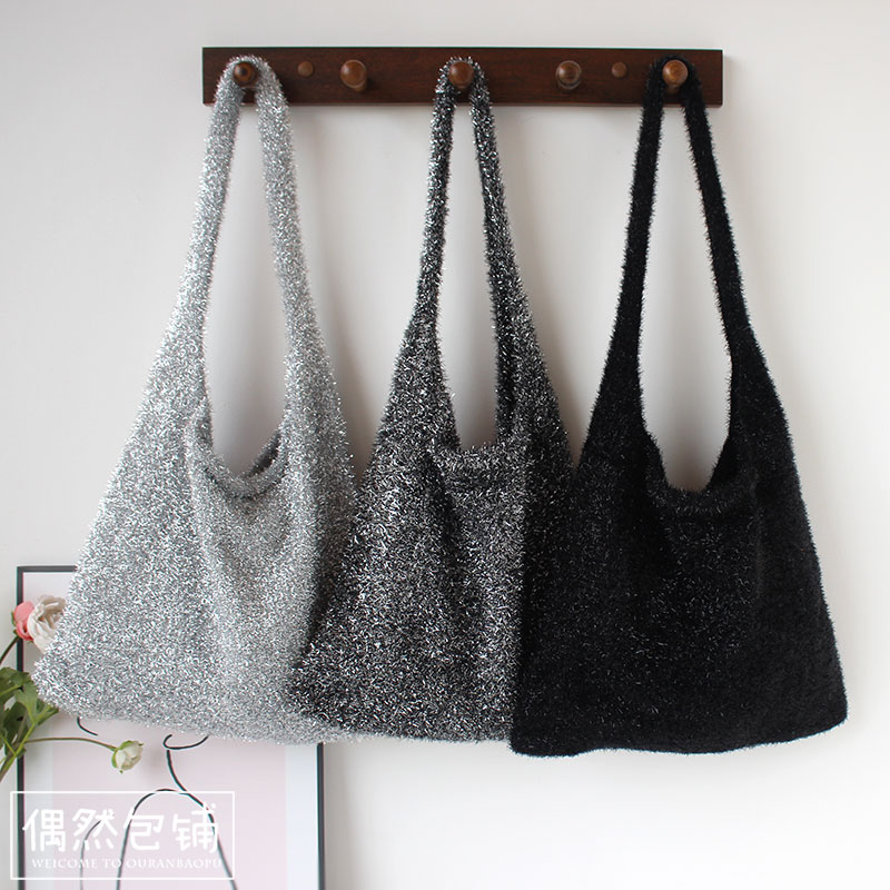 ins博主BlingBling亮闪闪单肩腋下包 秋冬韩系时尚潮女编织针织包