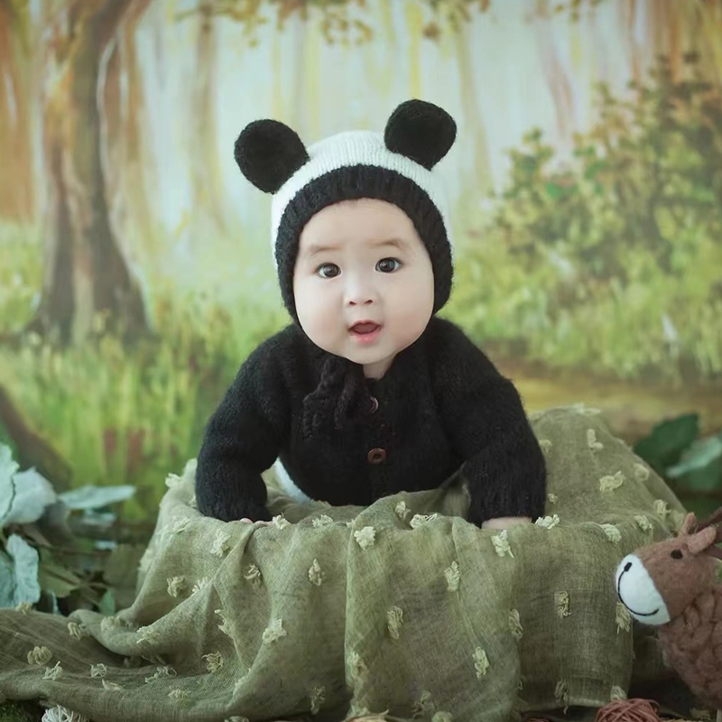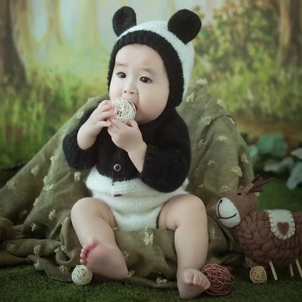 儿童可爱熊猫男女宝宝百天周岁摄影拍照针织影楼写真服装衣服套装