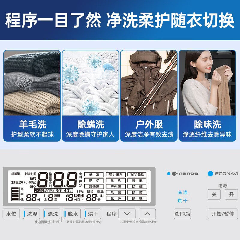 松下全自动11kg波轮洗烘一体洗衣机纳诺怡护衣离心洗不缠绕FW120