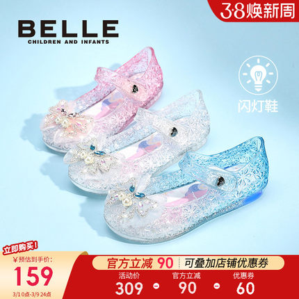 百丽童鞋女童凉鞋2026春季新款皮鞋儿童公主水晶鞋小女孩发光鞋子