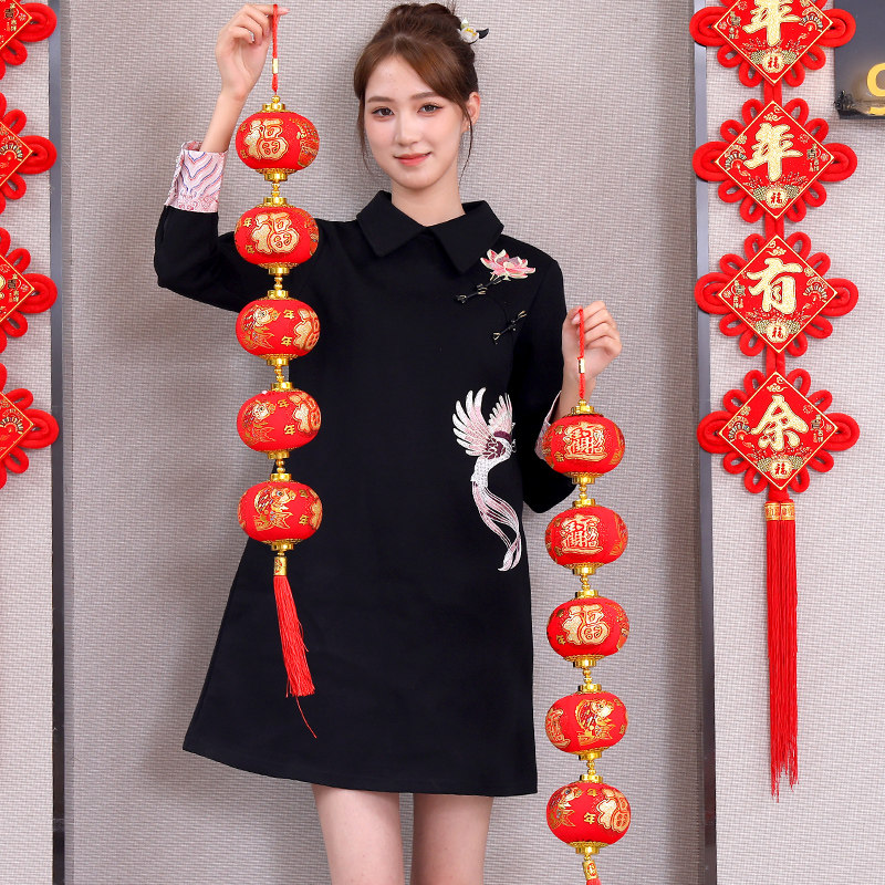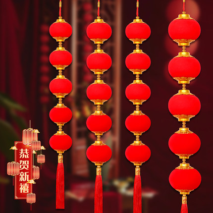 大红植绒灯笼串五连新年挂件乔迁布置客厅装饰品入户门喜庆小灯笼