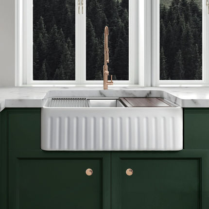 美式厨房耐火土水槽开放式半嵌入式陶瓷洗菜盆厨房陶瓷水槽