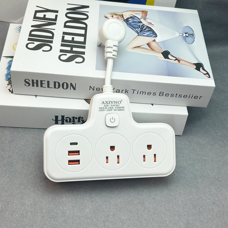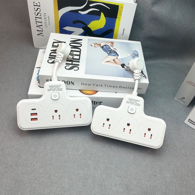 US美标美规扩展插座usb+type-c快充电排插110V台湾一转三转换插头