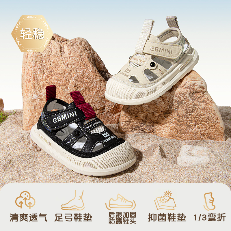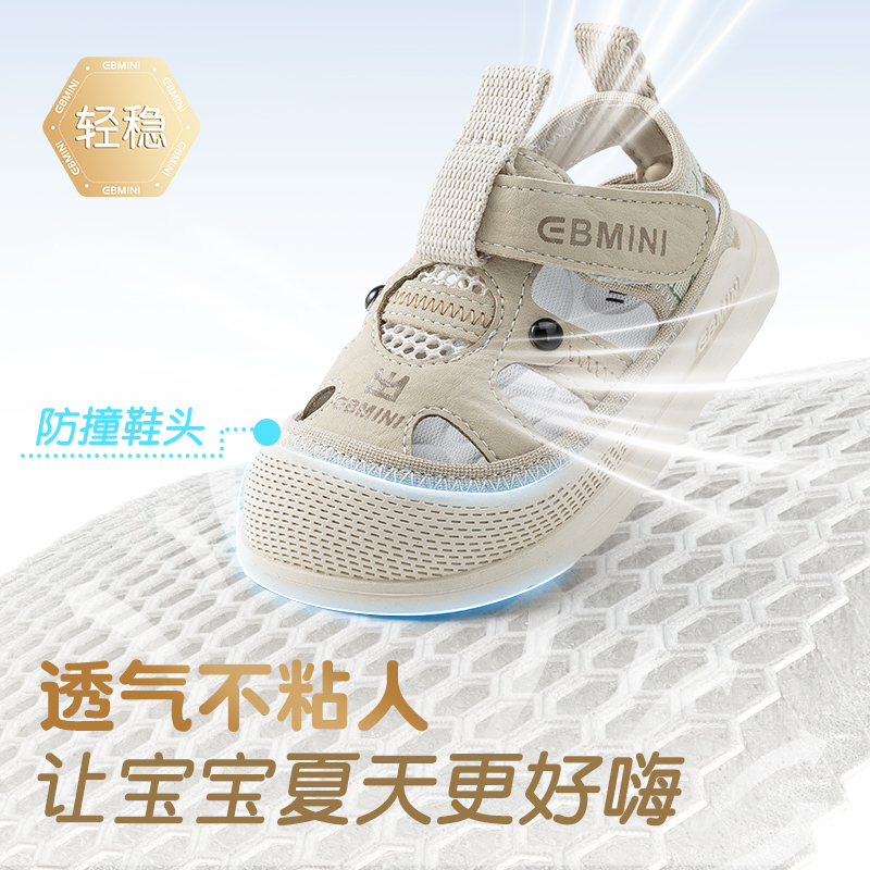 英贝米尼轻稳凉鞋宝宝鞋子2025夏季新款男童包头沙滩鞋女童学步鞋
