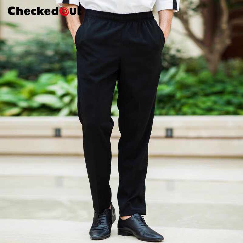 厨师裤子后厨餐厅服务员工作裤松紧酒店制服裤厨房黑色厨师工作裤