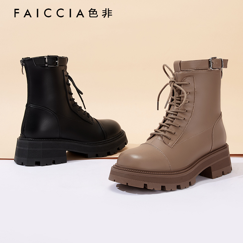 色非黑色系带厚底增高防滑马丁靴女款2025秋冬新款高帮靴子女鞋潮