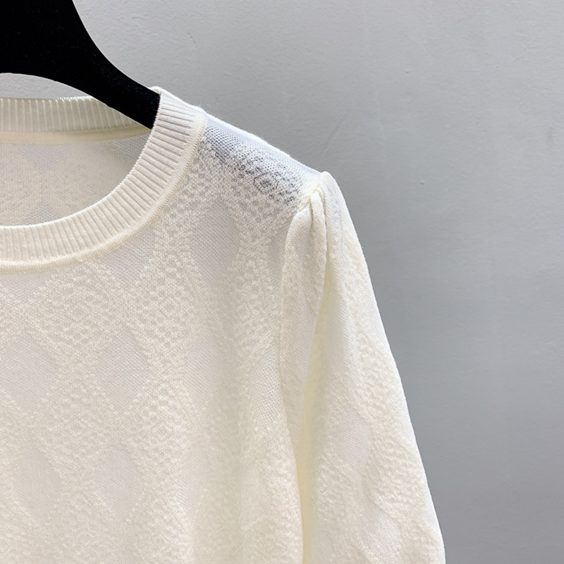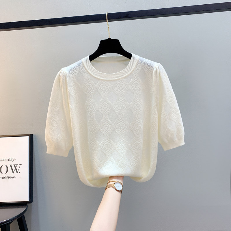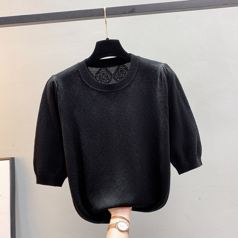 2025年早春新款五分袖短中袖轻薄针织衫T恤套头宽松圆领女士上衣