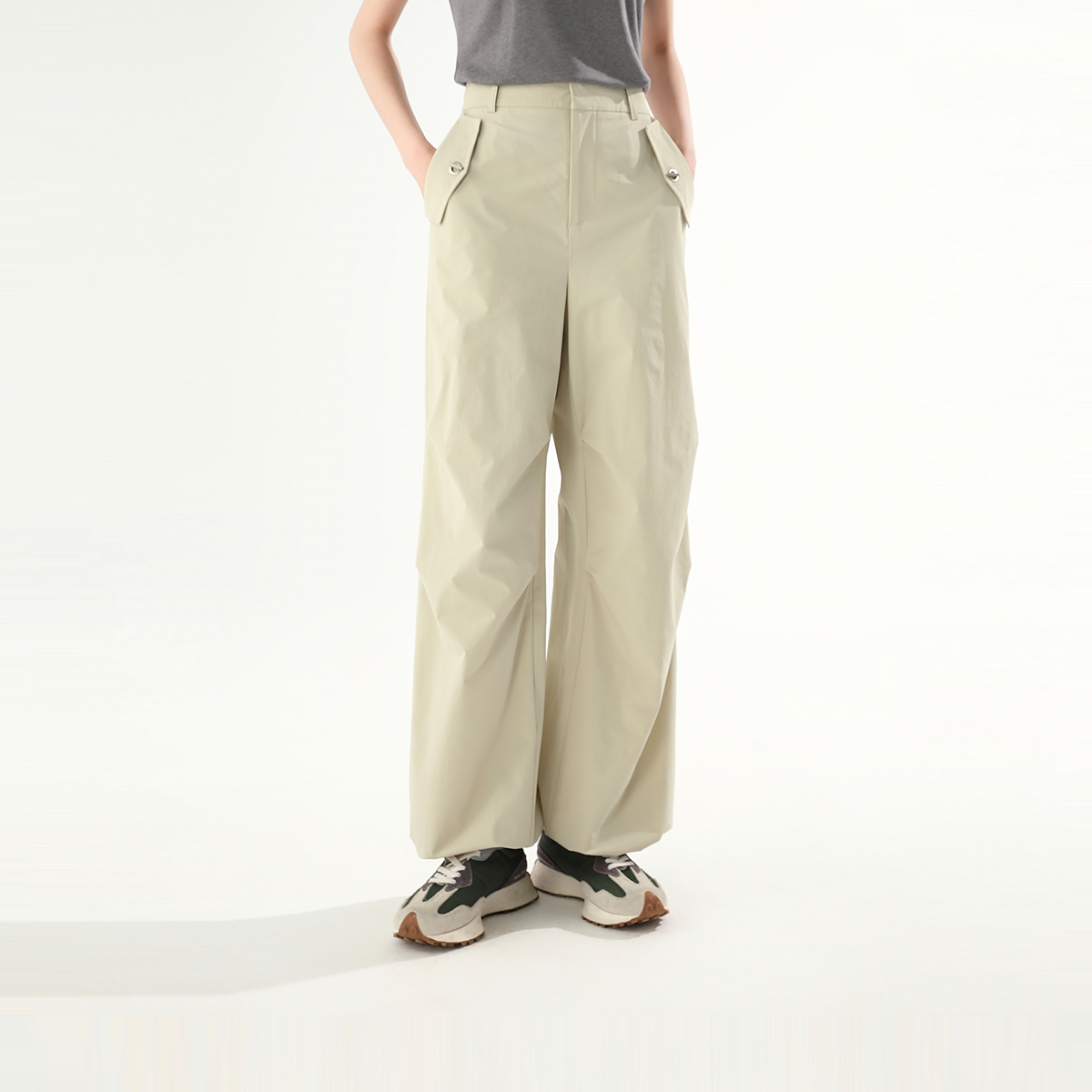 飞鸟和新酒宽松高腰休闲裤女2025夏季新款薄款束脚裤纯色工装裤