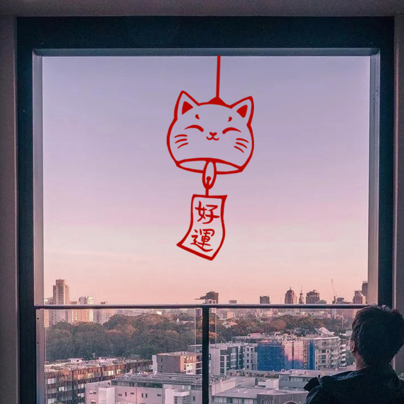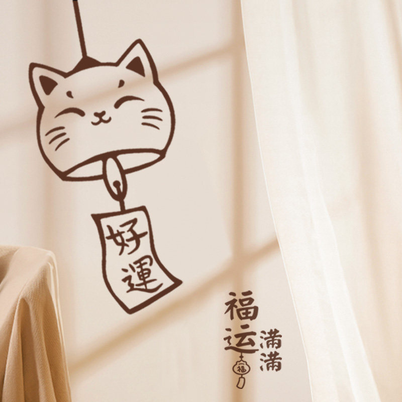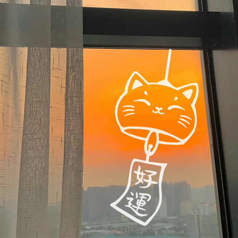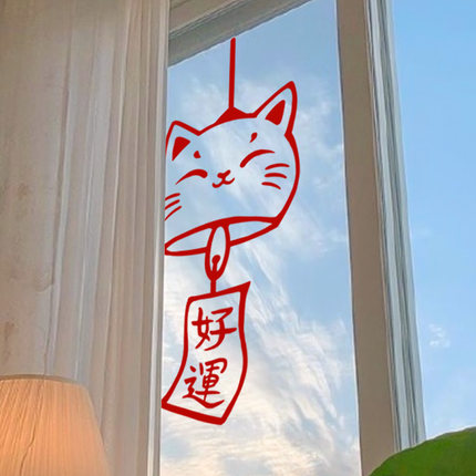 窗户装饰贴画新年好运风铃门贴卧室个性背景墙贴家居猫咪玻璃贴纸