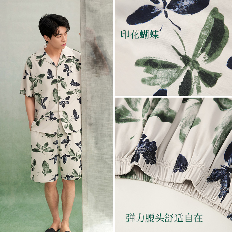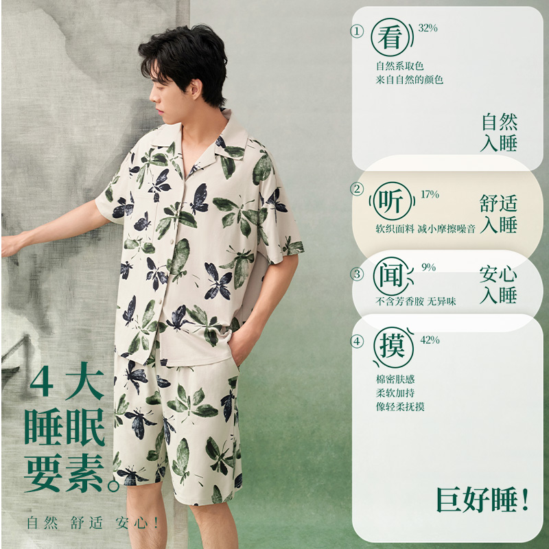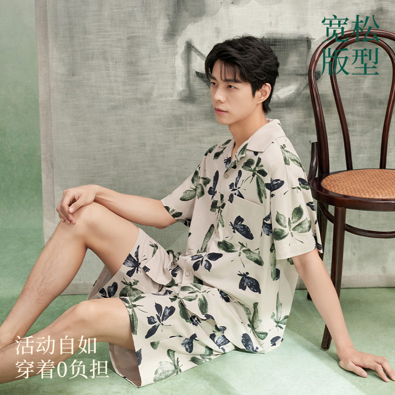 安之伴【巨凉感】纯棉男士睡衣夏季夏款宽松短袖短裤可外穿家居服
