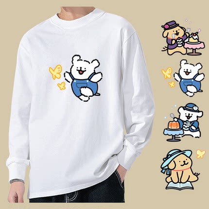 卡通线条小狗马尔济斯周边男女情侣学生百搭定制打底纯棉长袖T恤