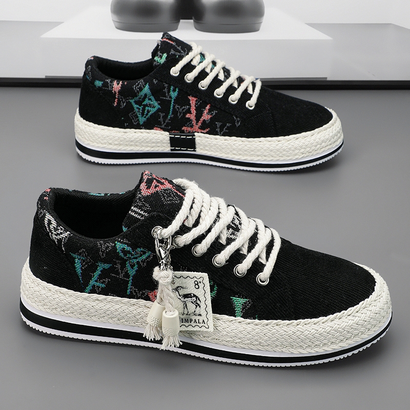 帆布男鞋夏季透气百搭休闲板鞋上班工作软底增高老北京亚麻布鞋男