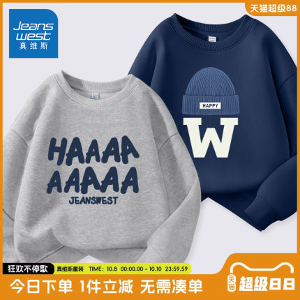 真维斯童装男童卫衣秋冬款儿童2025新款衣服加绒大童秋季长袖上衣