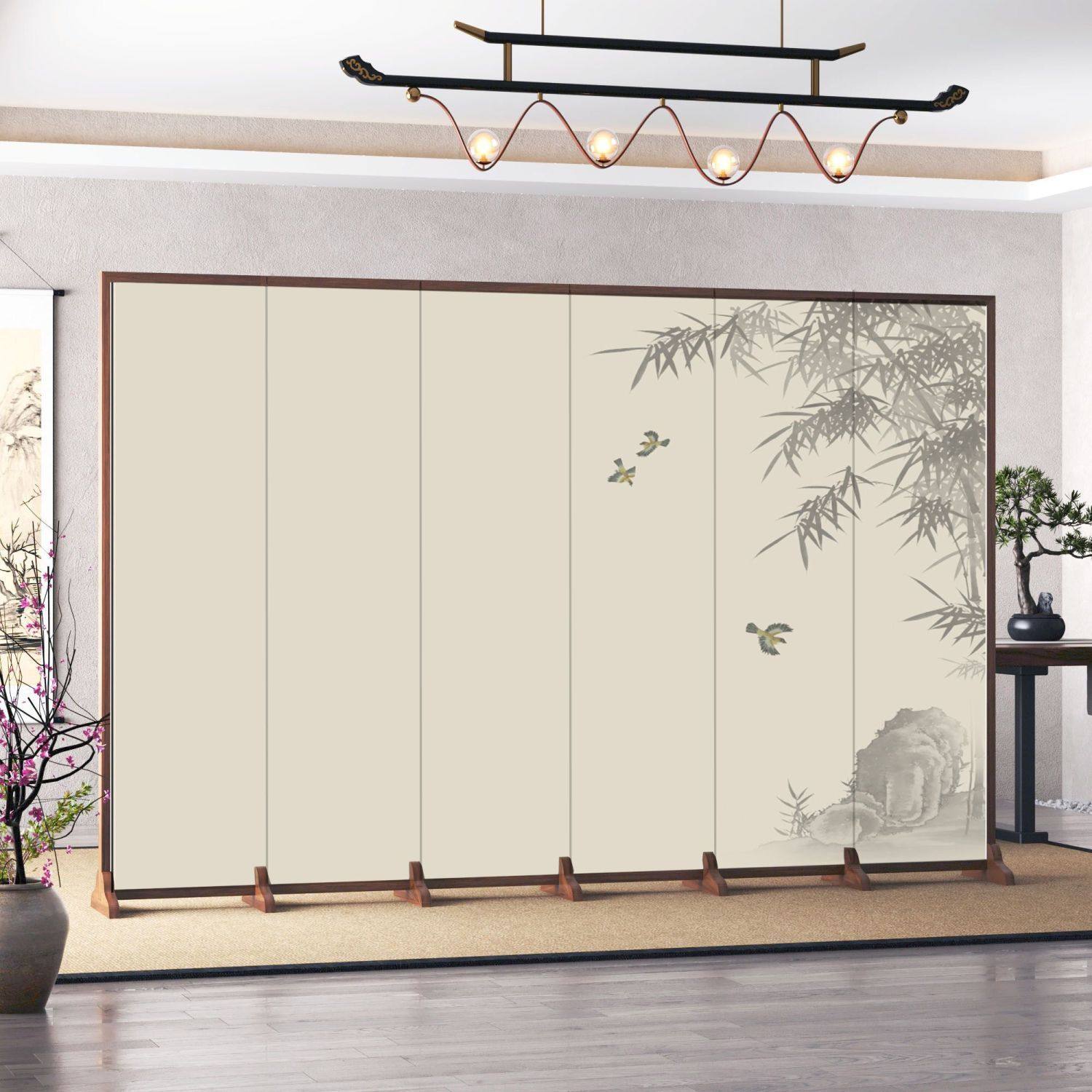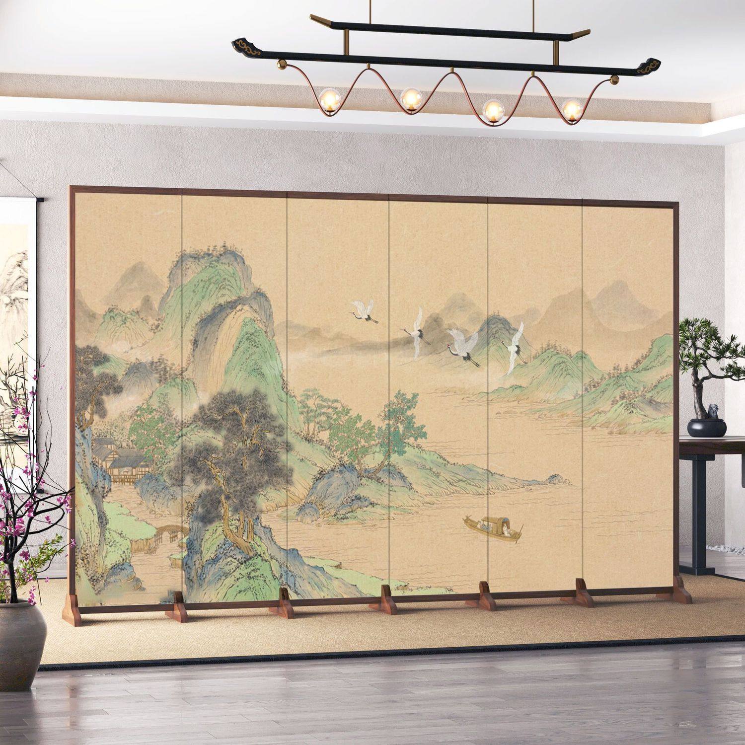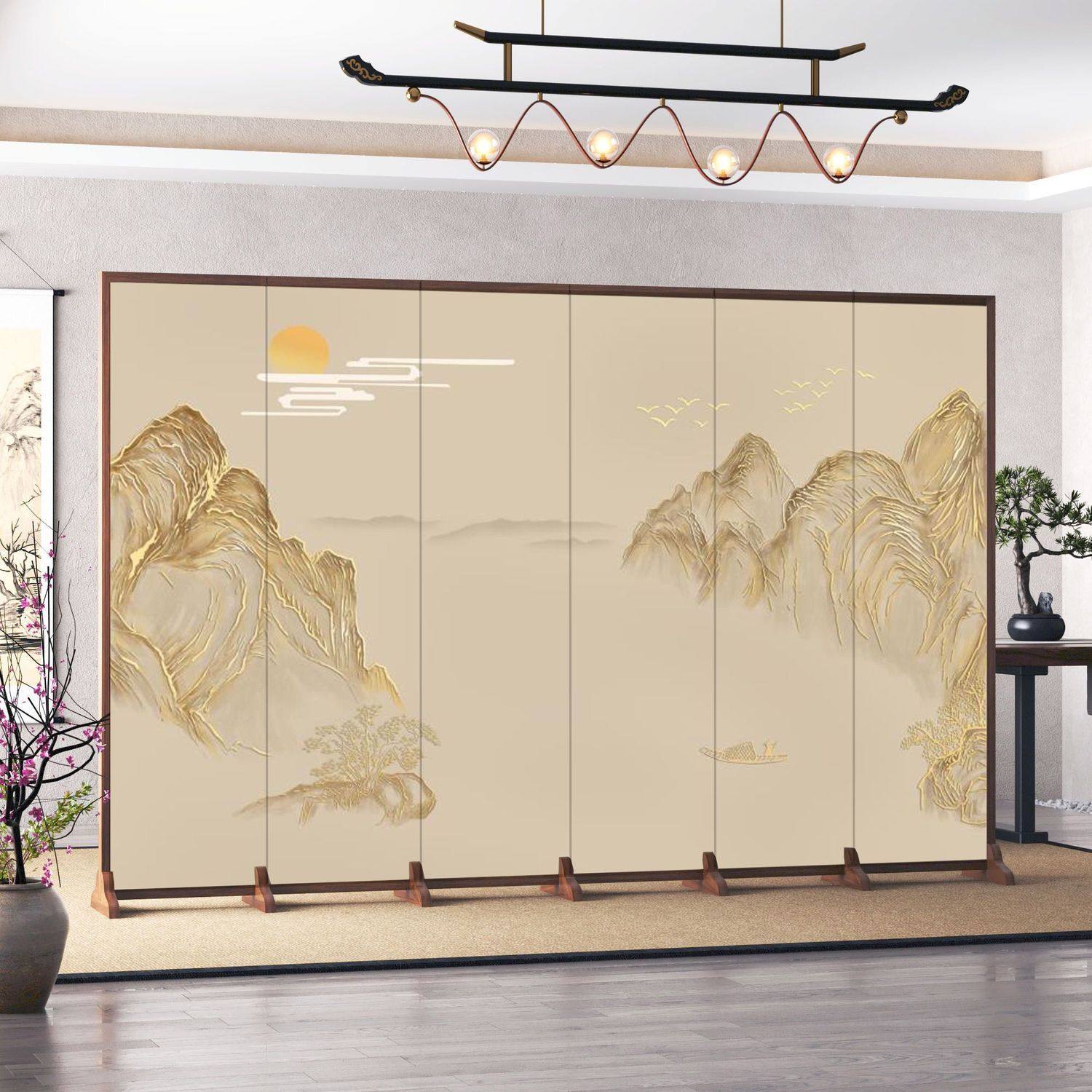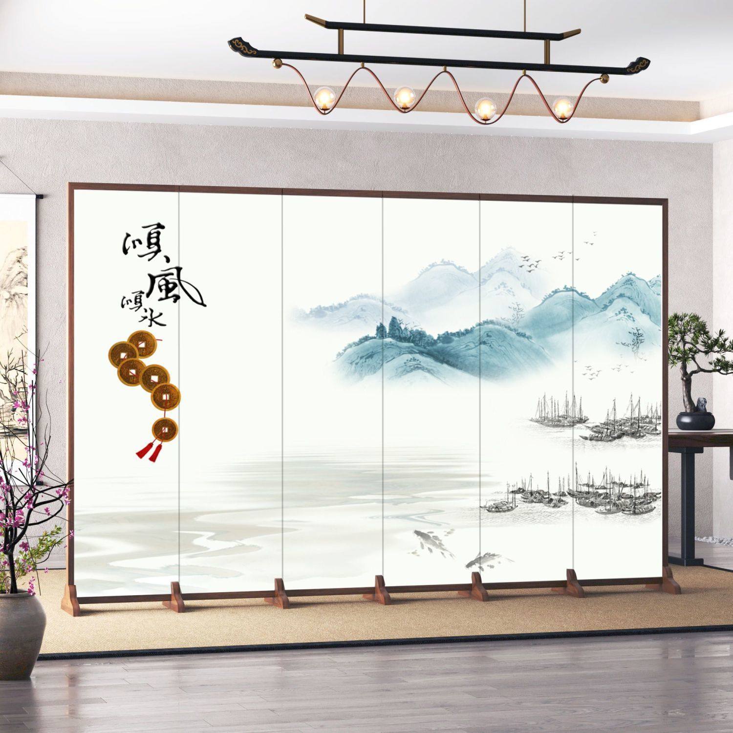 新中式山水屏风隔断客厅实木折叠办公室玄关移动遮挡装饰简易折屏