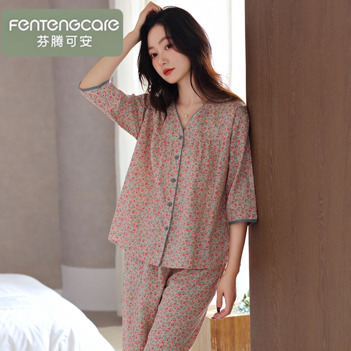 梭织棉纱布睡衣女2026新款春夏季纯棉七分袖小香风家居服夏天