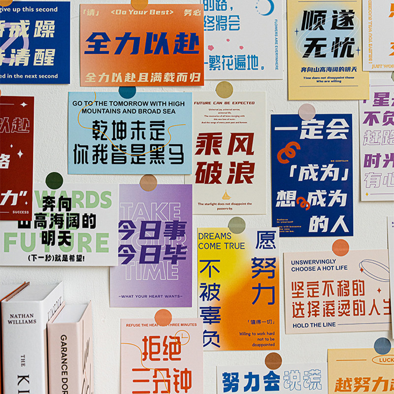 乘风破浪励志文字卡片中考高考激励加油助威贴纸班级文化墙贴布置