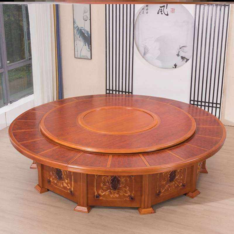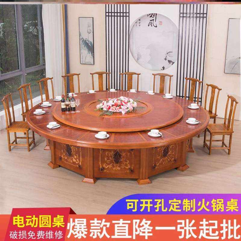 自动电动超大商用餐桌15人圆台大圆桌实木桌椅桌子新中式旋转圆形
