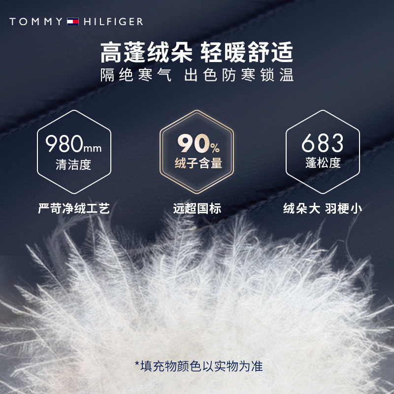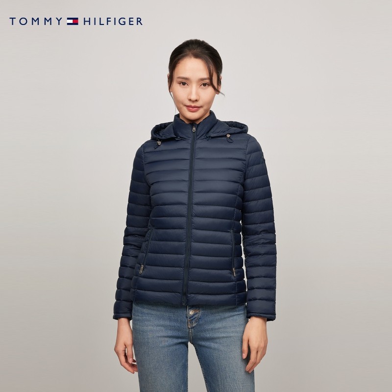 【90绒】Tommy25秋冬新款女休闲通勤轻暖排骨绗缝连帽羽绒服外套