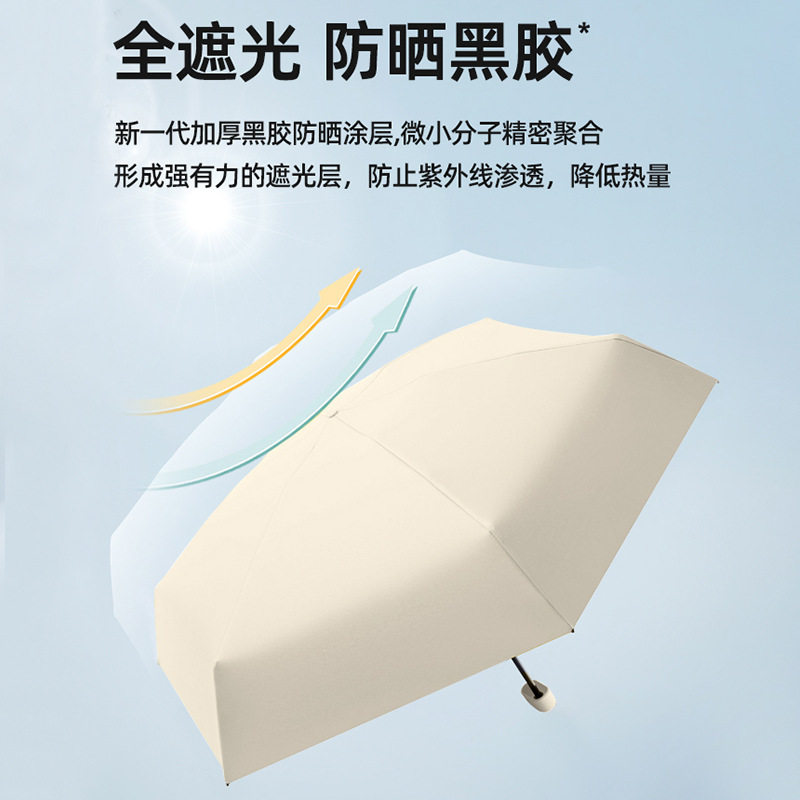 柯梅恩五折伞纯色黑胶折叠伞防晒