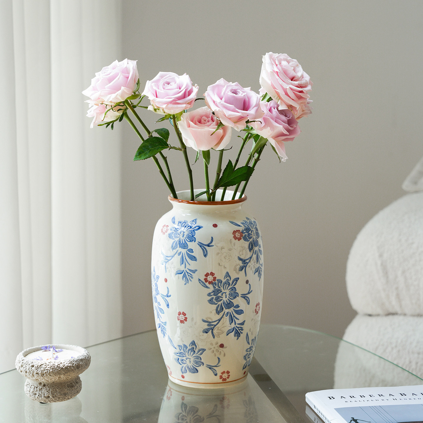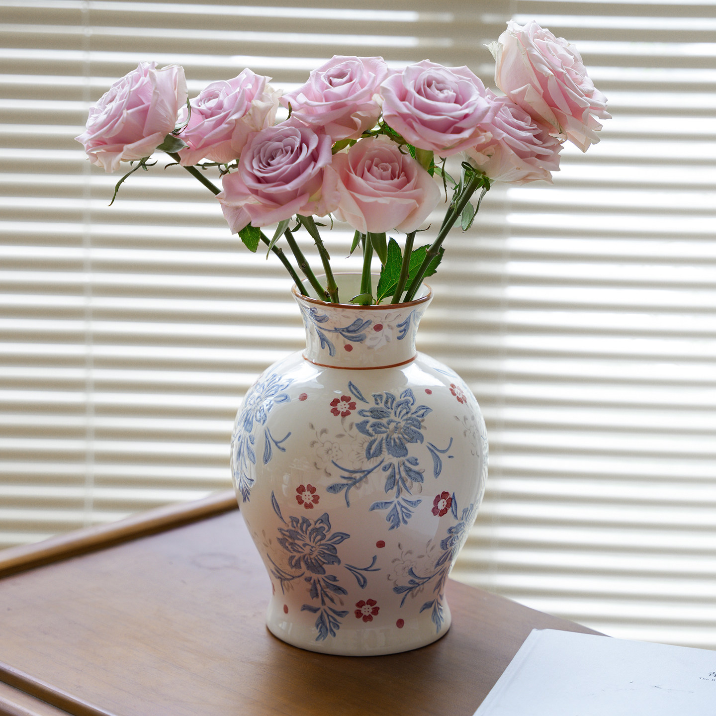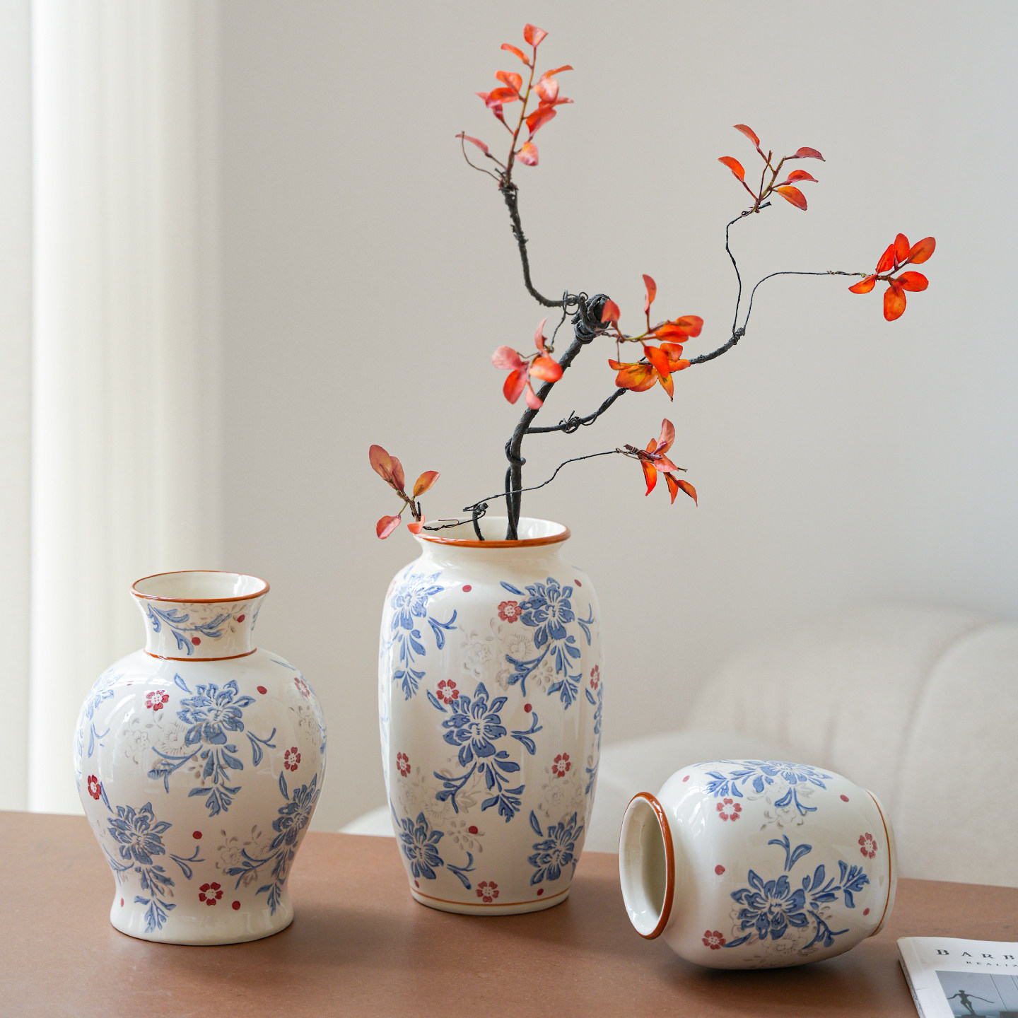 青花瓷复古陶瓷花瓶摆件客厅鲜花插花陶罐轻奢装饰品新中式花器小