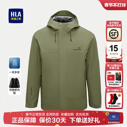 HLA/海澜之家曾舜晞同款羽绒服2025秋冬连帽保暖可脱卸内胆外套男