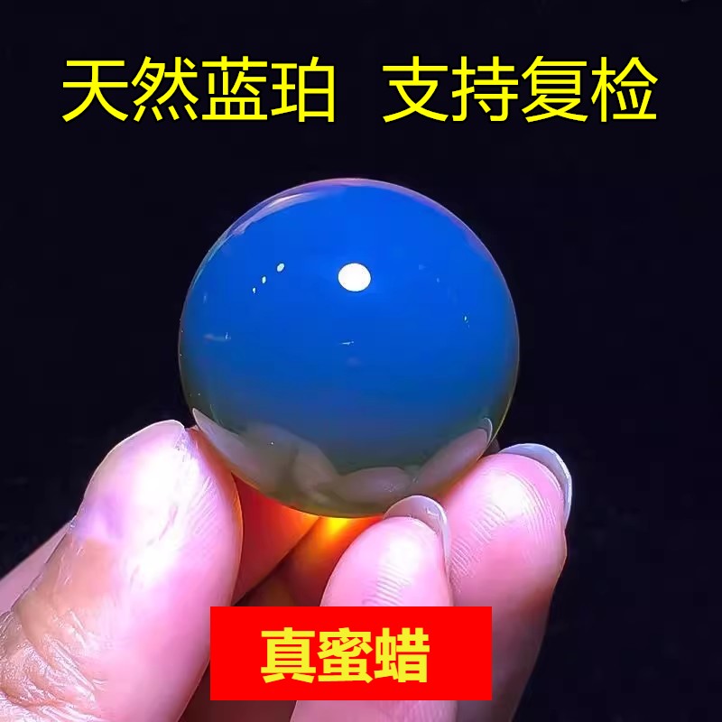 天然蓝珀单珠散珠墨西哥多米尼加琥珀单颗蜜蜡圆珠子多宝手串隔珠