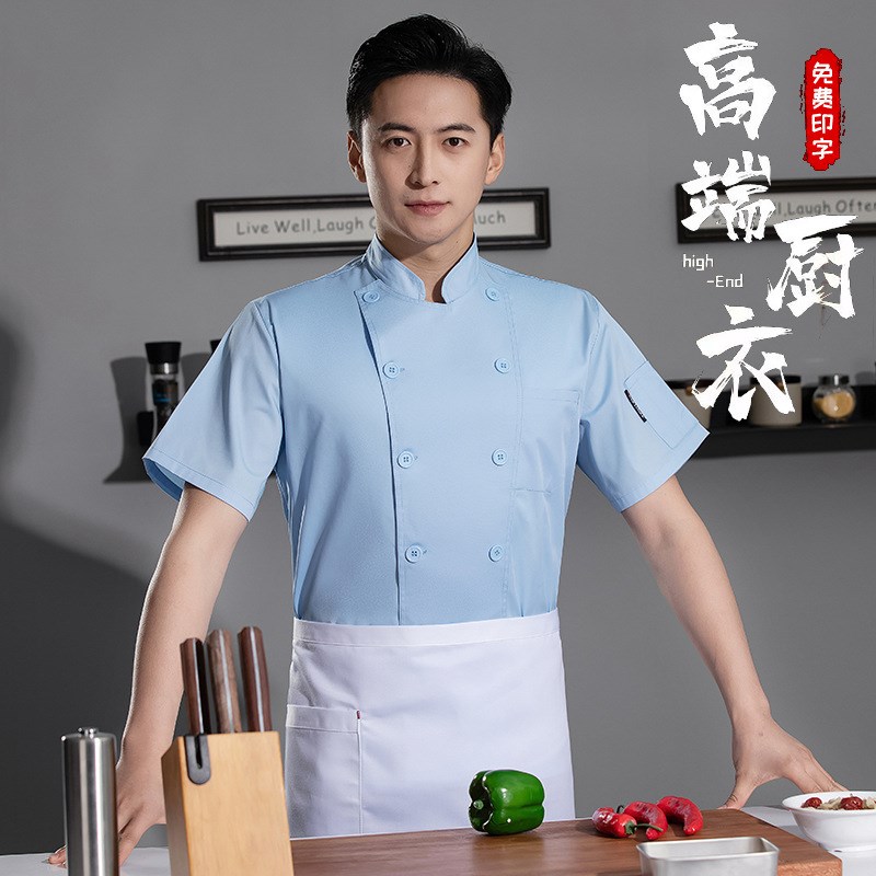 厨师工作服男短袖双排扣夏季透气餐饮酒店食堂蛋糕店后厨厨衣工装