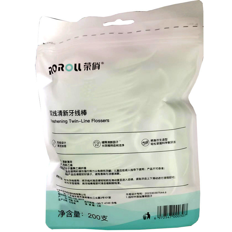 荣俏小鳄鱼双线口味牙线家庭装超细清新薄荷牙签抗龋牙线棒200支