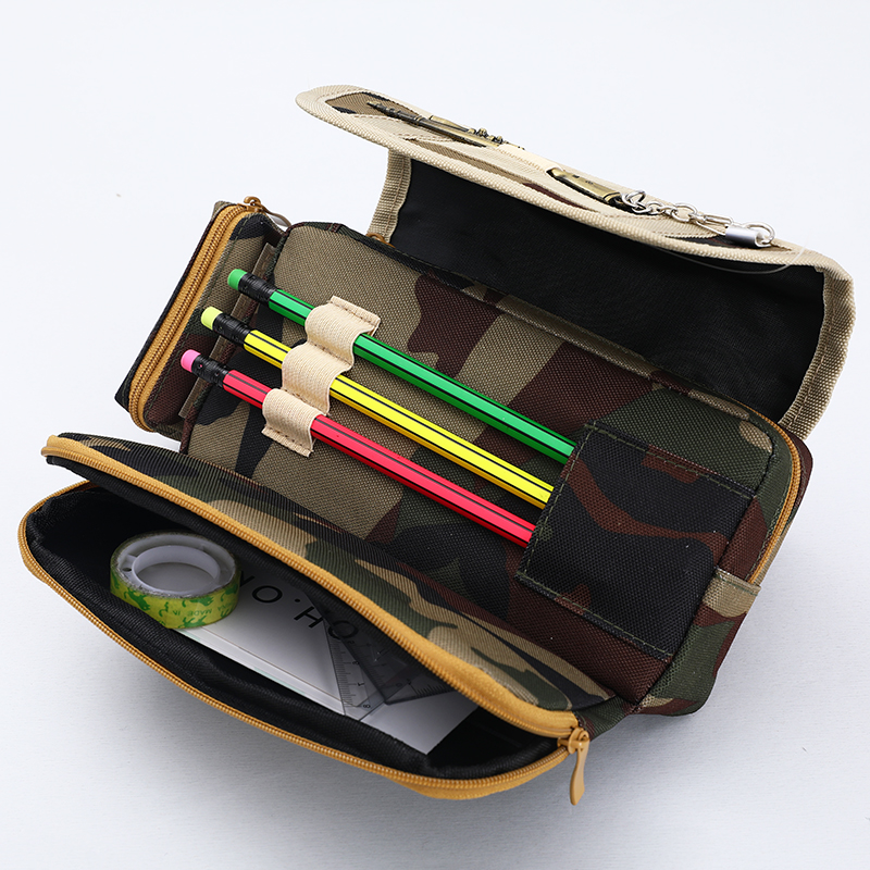 儿童迷彩笔袋男小学生文具盒大容量铅笔盒三层牛津布文具袋铅笔袋
