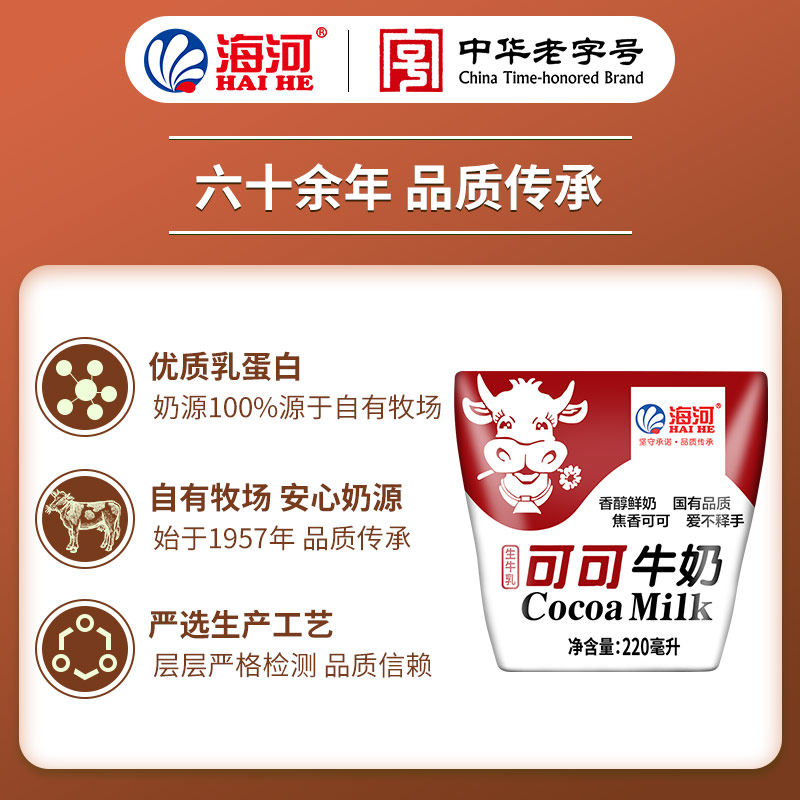 天津海河牛奶可可220ml*10袋整箱网红旗舰款味牛奶儿童学生早餐奶