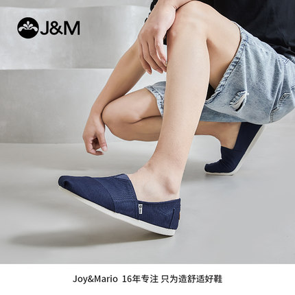 快乐玛丽2025夏季新款渔夫鞋男帆布鞋平底休闲懒人一脚蹬单鞋男