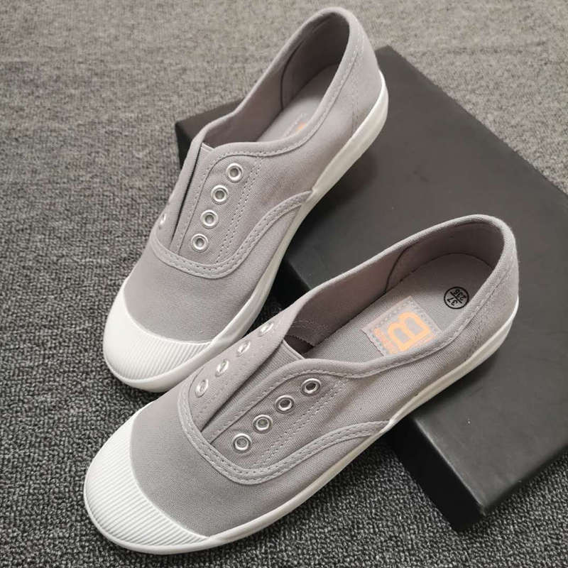 2025春夏新款韩版小白鞋豆豆鞋平底百搭一脚蹬休闲乐福帆布女单鞋