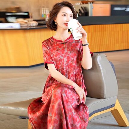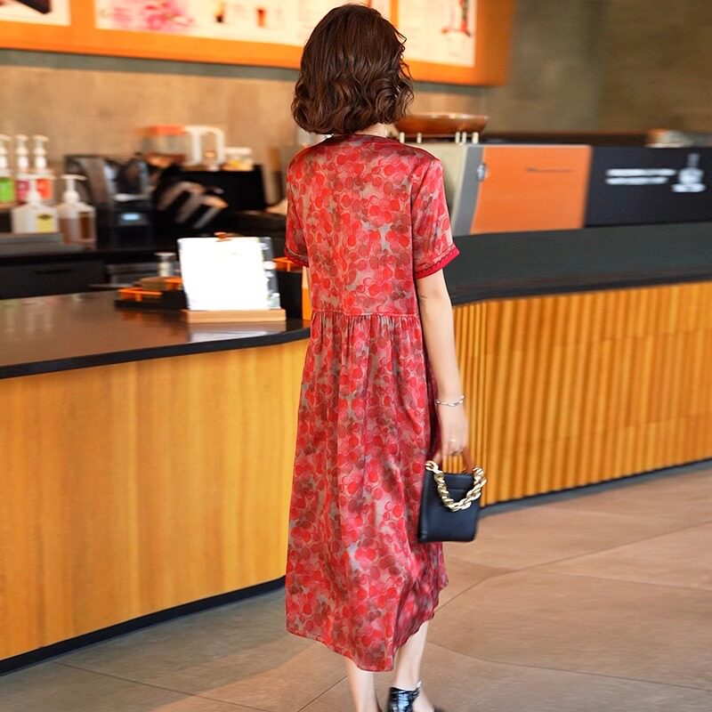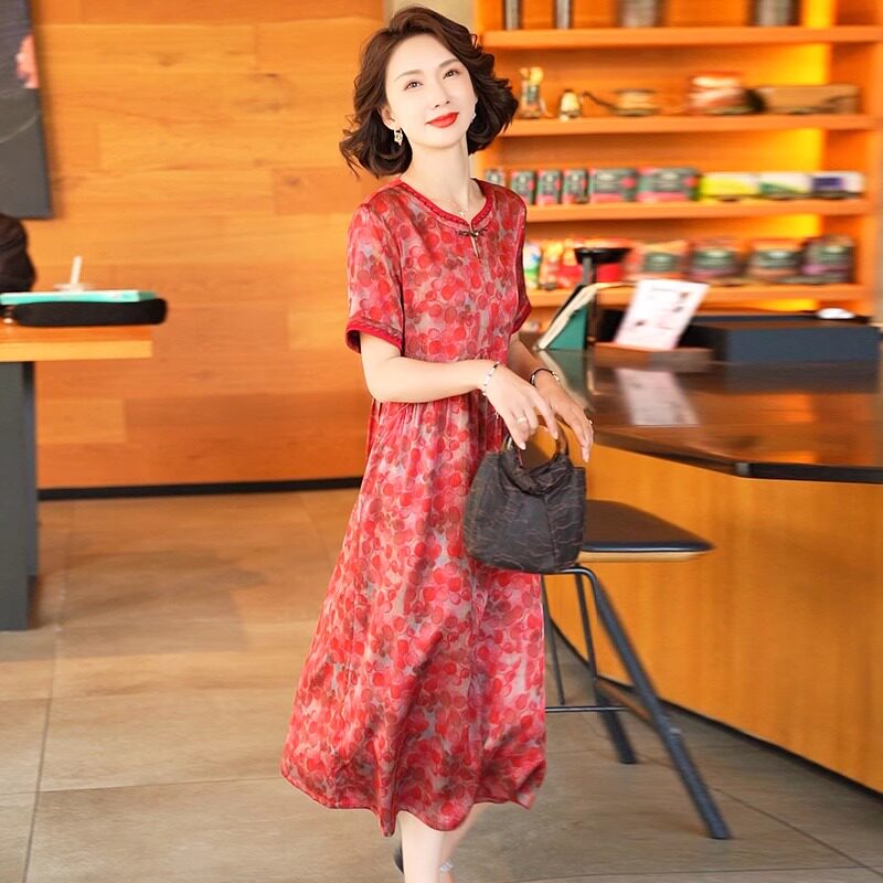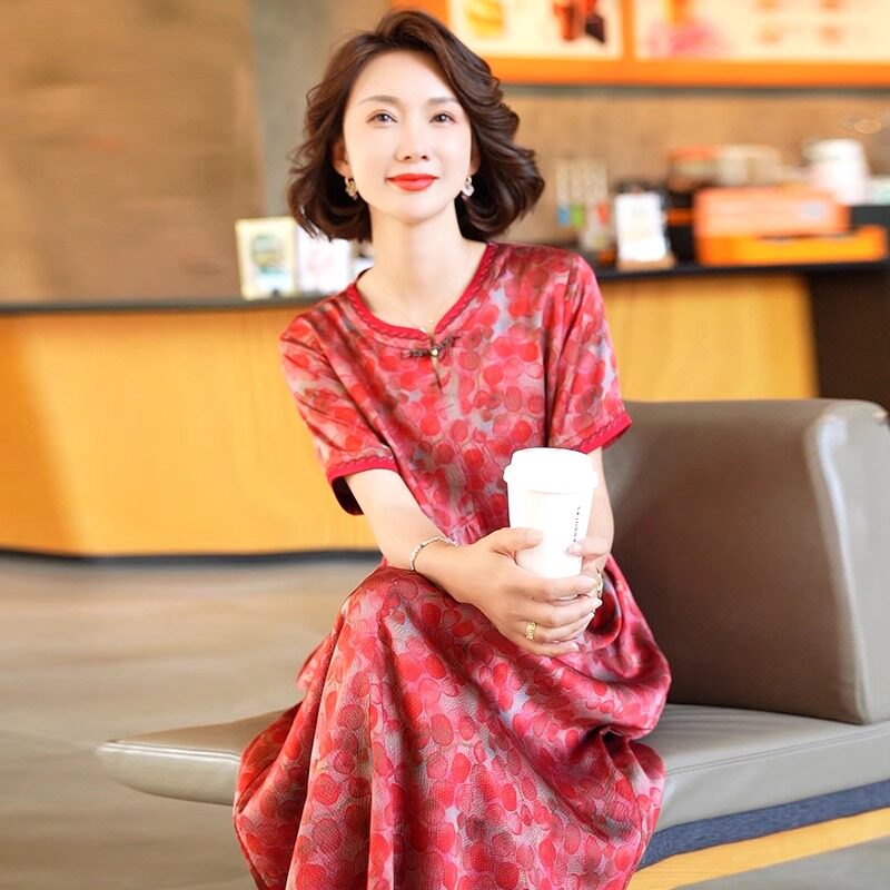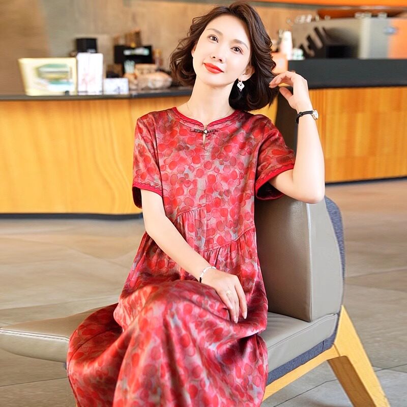 杭州大牌真丝连衣裙2025夏季新款高端妈妈桑蚕丝宽松显瘦碎花裙子