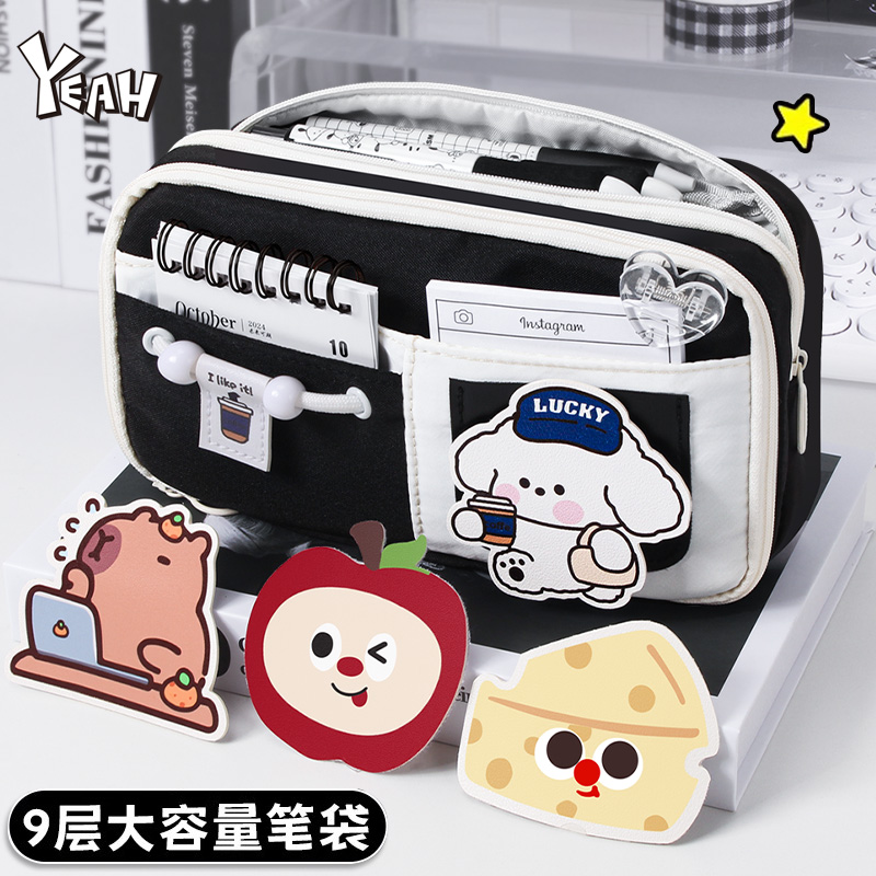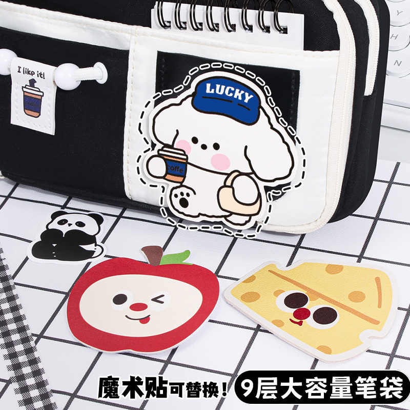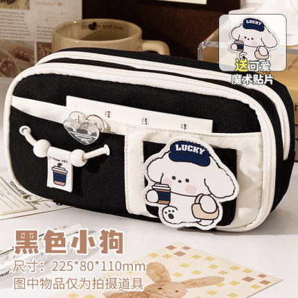 送魔术贴!2025新款儿童高颜值可爱小狗黑色笔袋男孩小众不撞款文具盒女简约ins风铅笔盒学生大容量痛包