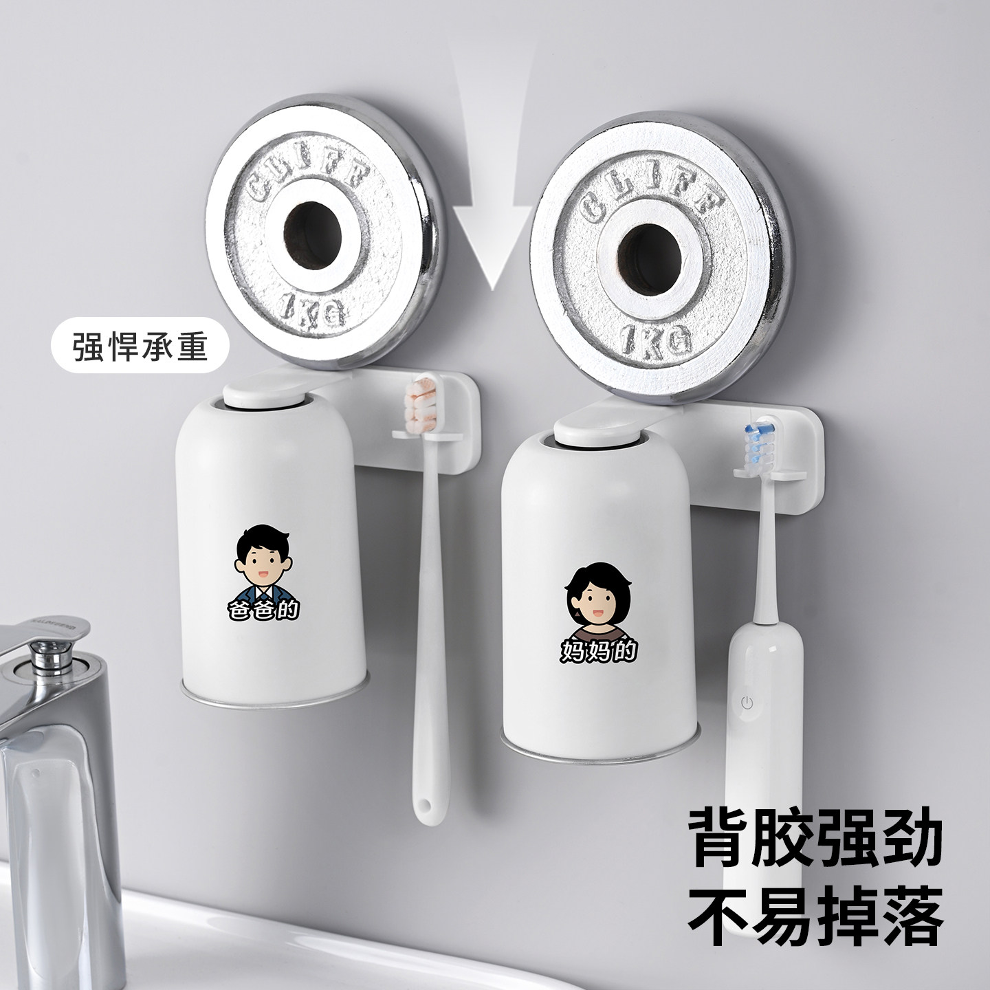磁吸式不锈钢漱口杯牙刷置物架一家三口四口刷牙杯子架壁挂免打孔