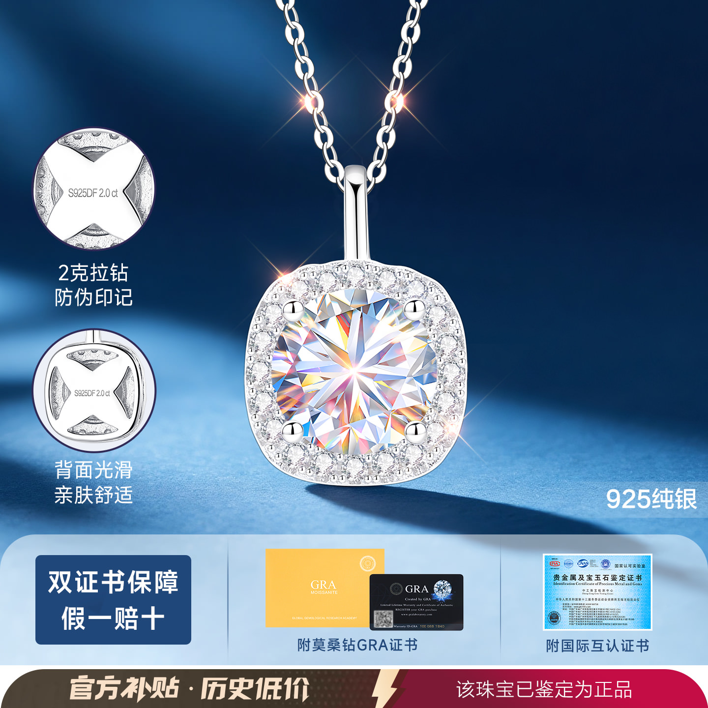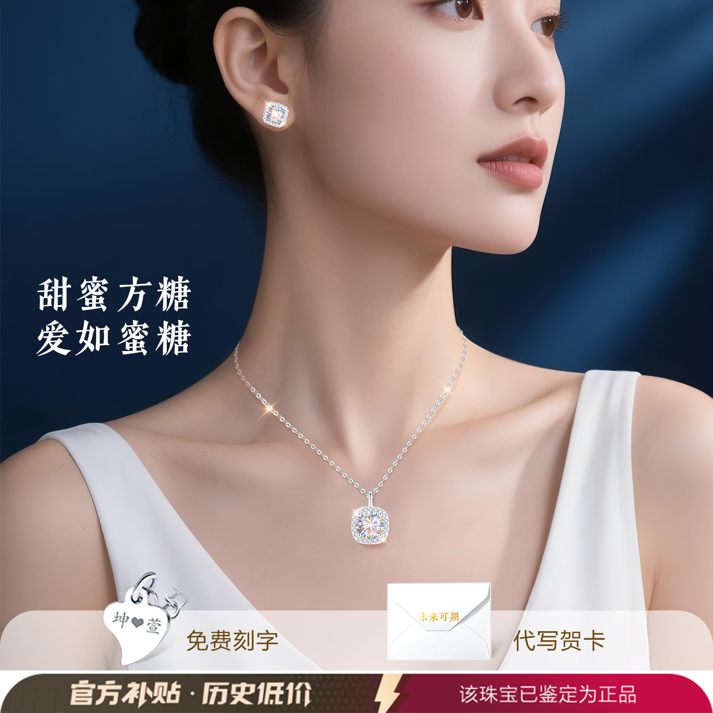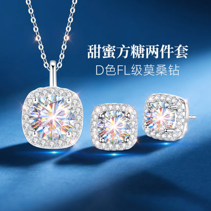 小方糖银项链女士女纯银女款吊坠莫桑石钻石莫桑钻首饰套装送女友