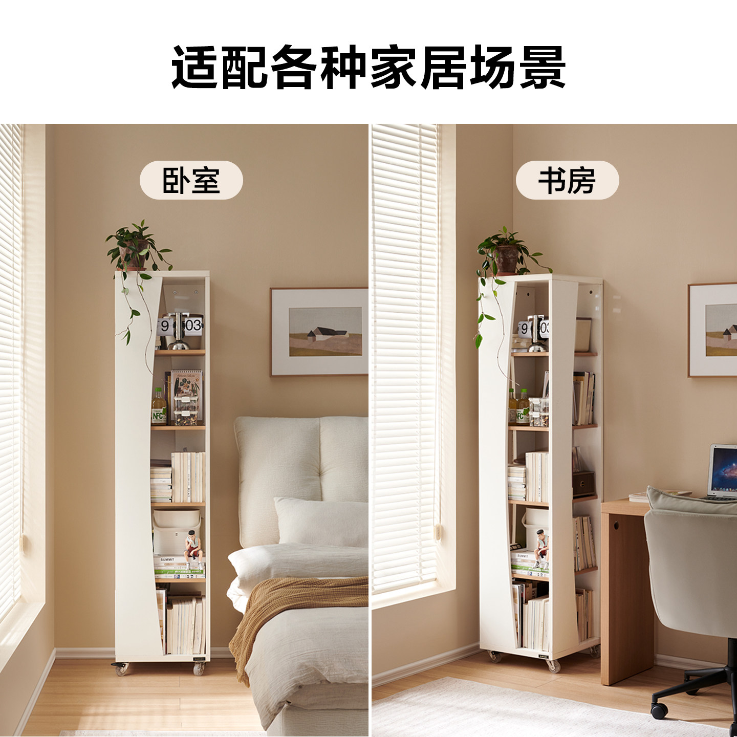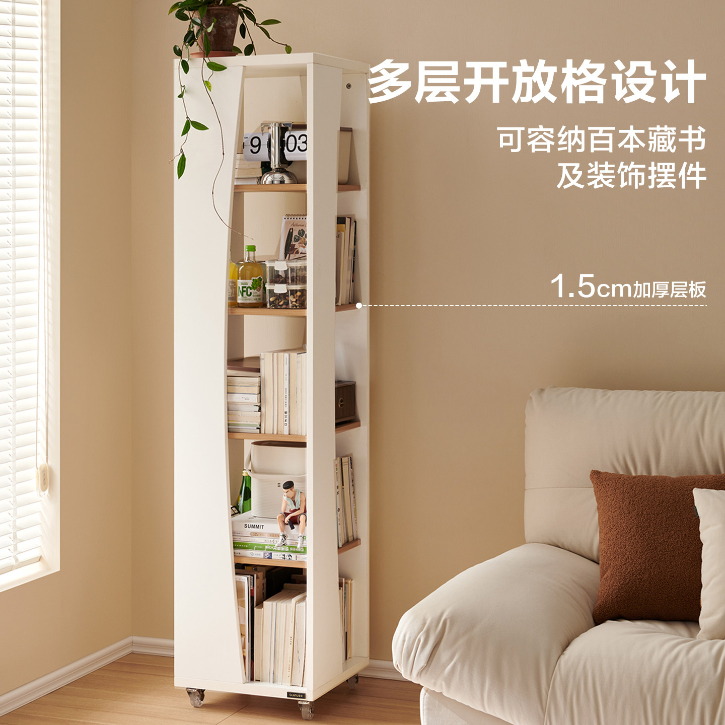 全友家居可移动旋转书架卧室床边置物储物架客厅书房收纳边柜书柜