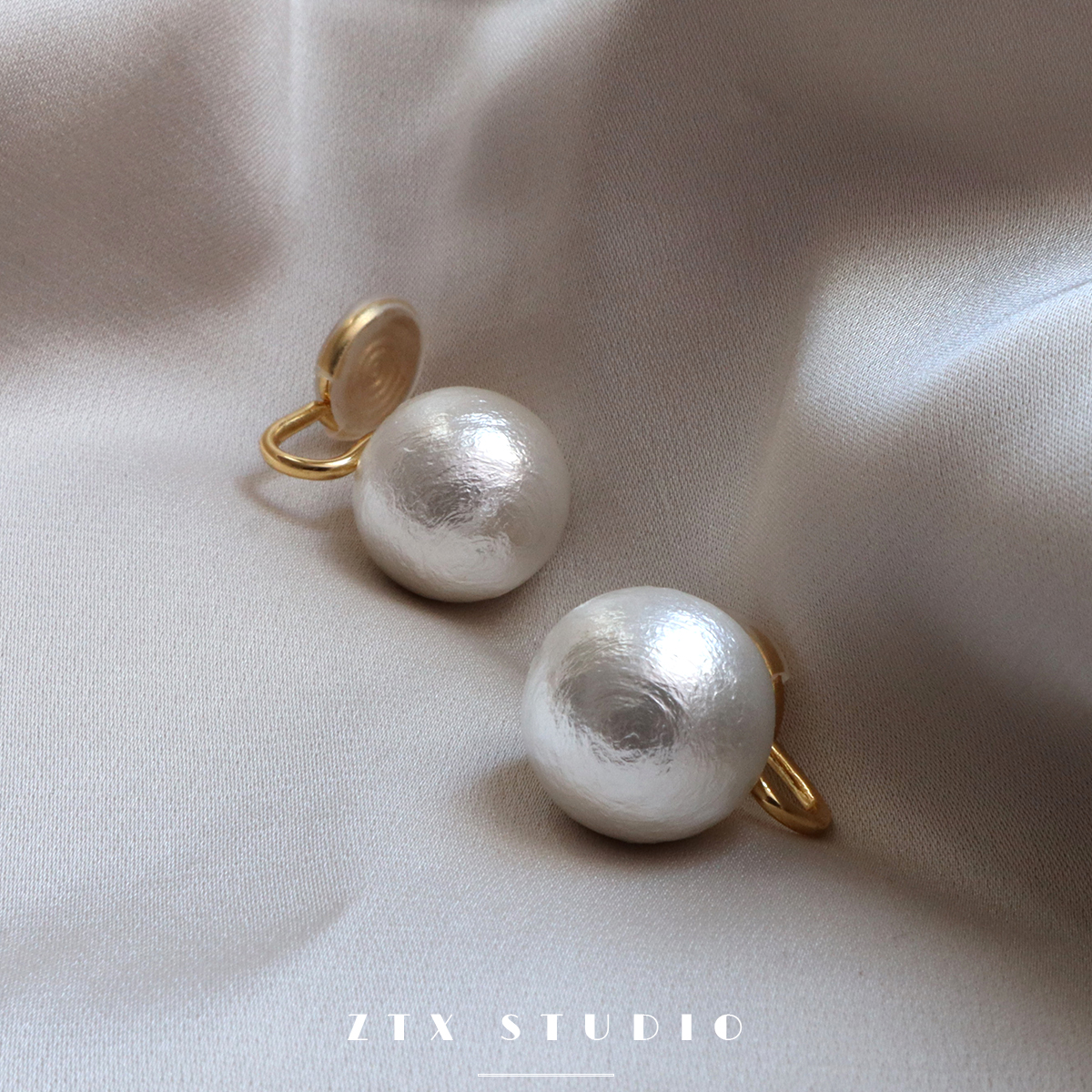 棉花珍珠蚊香盘耳夹女无耳洞耳饰无痛简约气质耳钉法式复古耳环夹