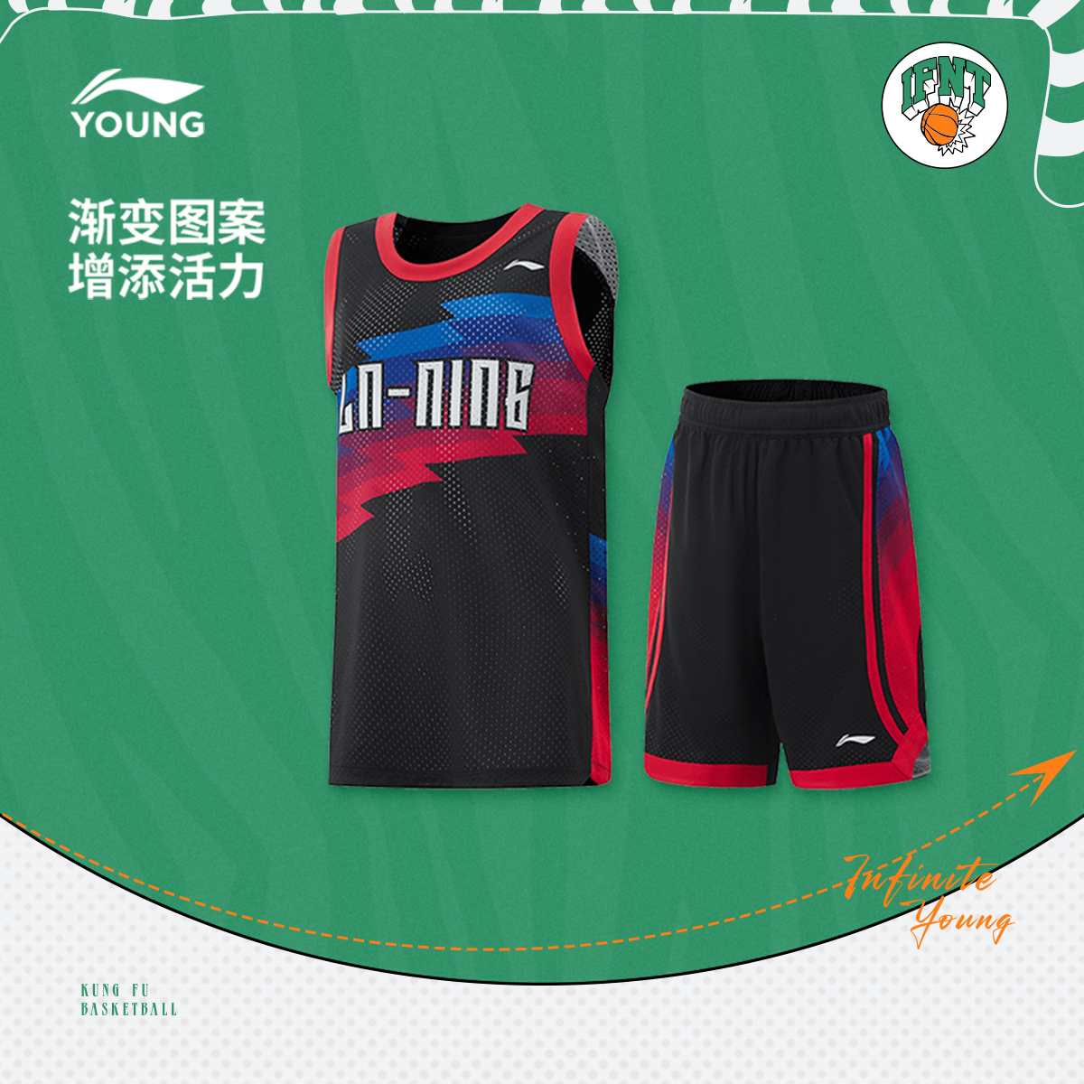 商场同款|李宁儿童宽松篮球服训练比赛服运动套装网眼透气男童装