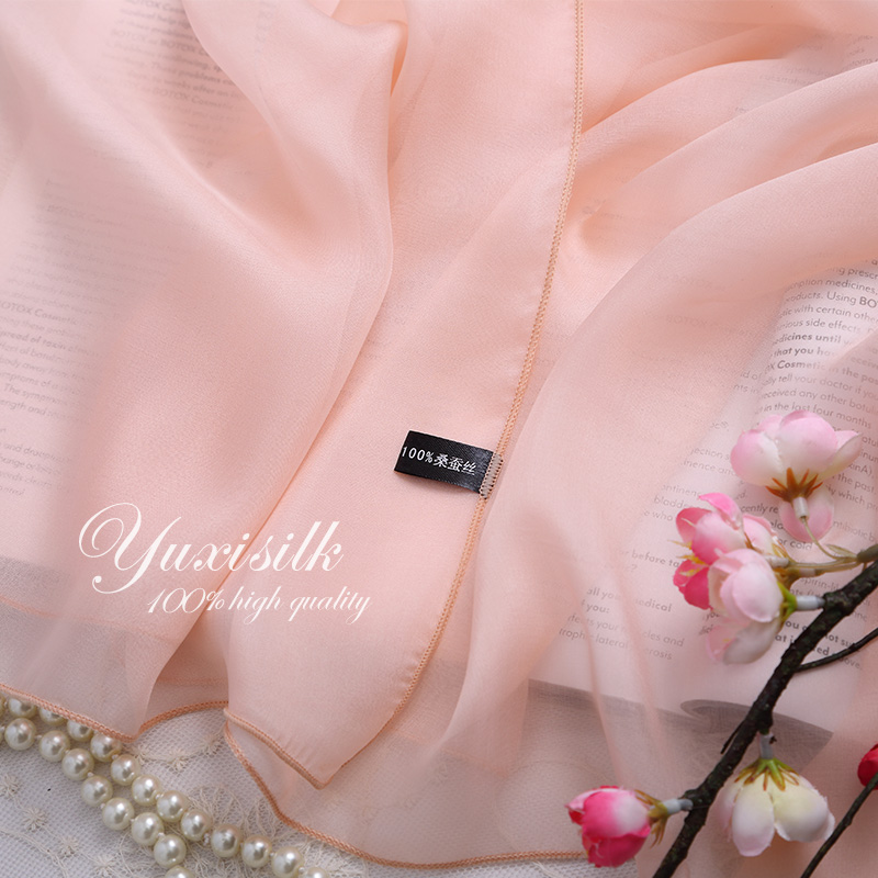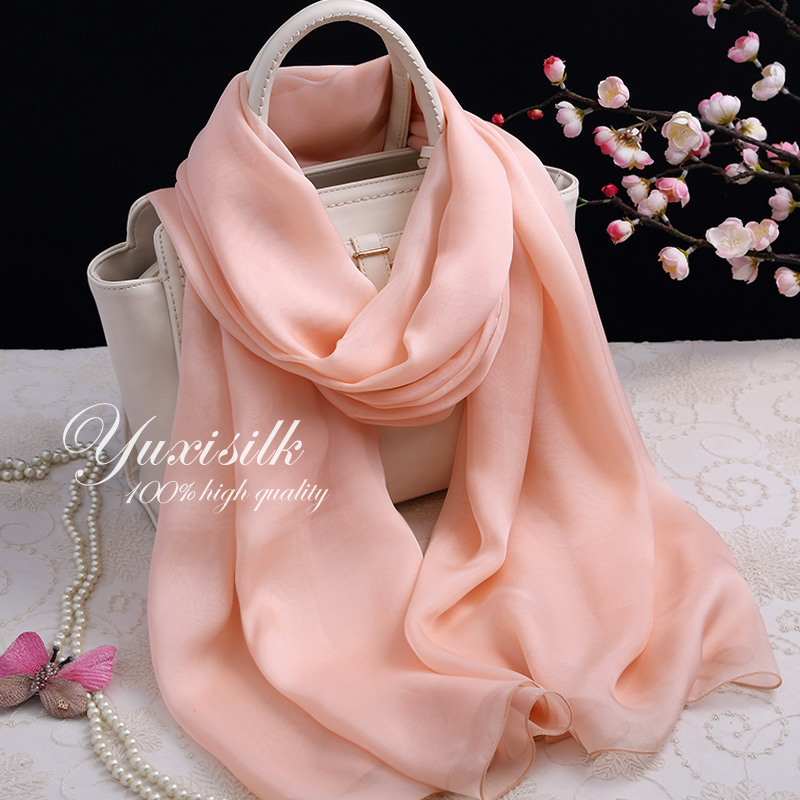 裸粉色纯色100%桑蚕丝长款真丝丝巾披肩女纱巾春秋冬夏季丝绸围巾